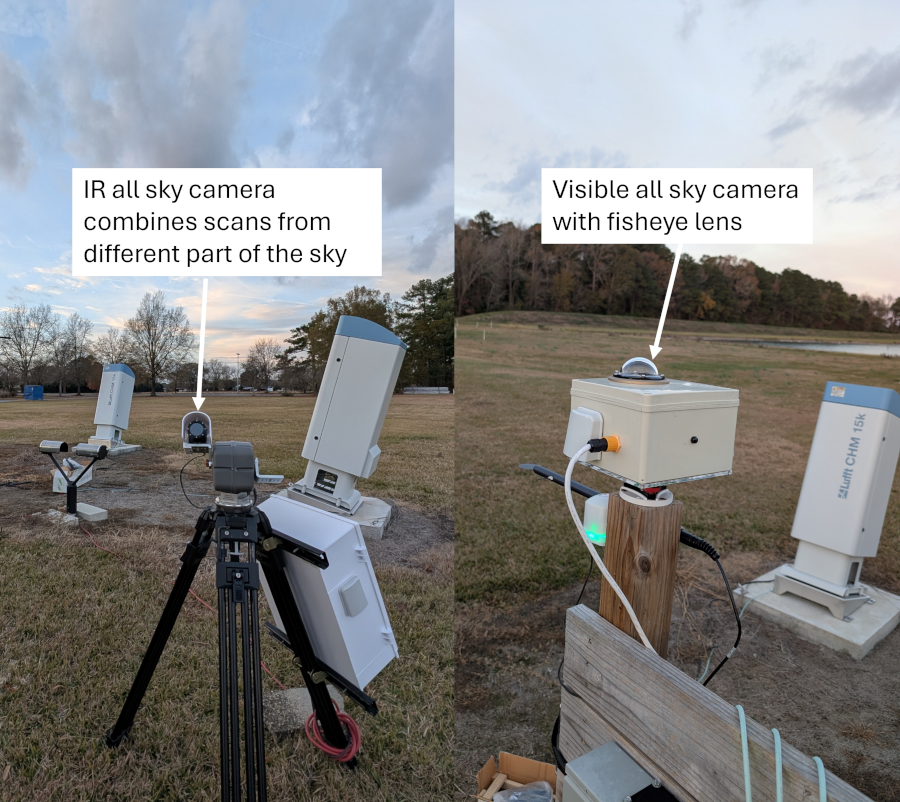 | Environment Analytics custom designed instrument | Visible all sky camera | Photos of clouds over site |